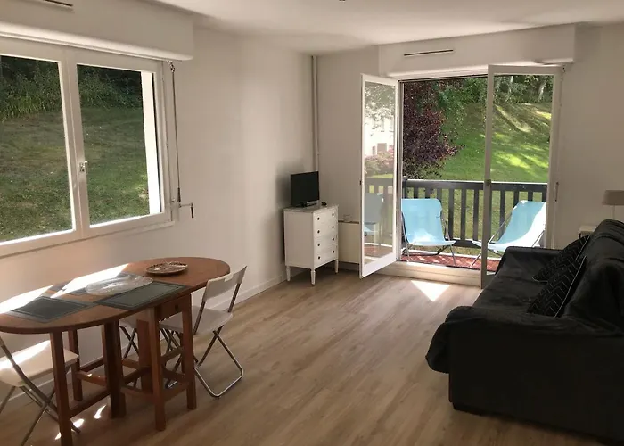 Entre Foret Et Mer Au Calmeアパ-トメントには,台所,薄型テレビ,多重チャンネルテレビとパティオ付きの客室があります. 施設はモルニ-港まで1.4km,ド-ヴィル・ビ-チは2.3kmにあります.